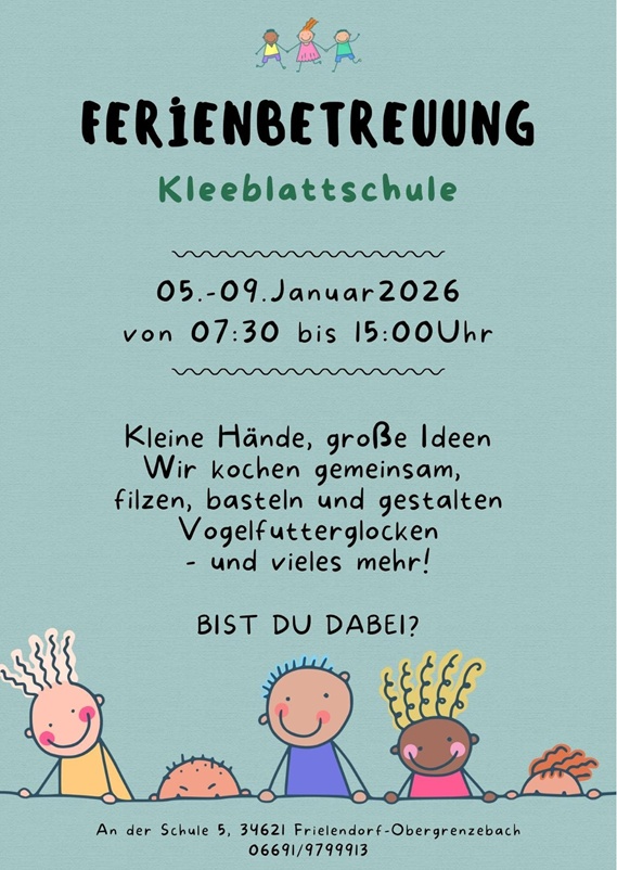 • 05.01.-09.01.2026 geplante Ferienbetreuung an der Kleeblattschule